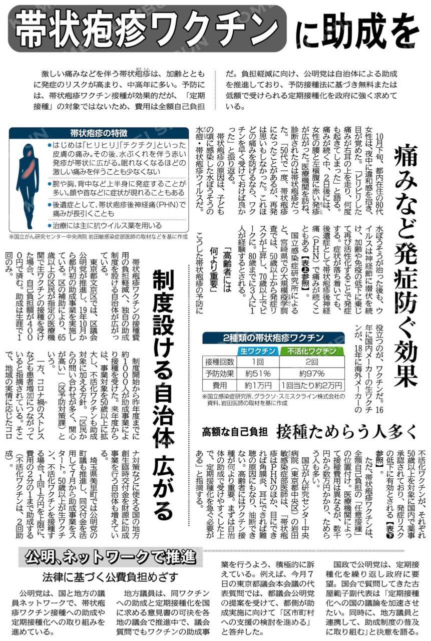 市議会公明党ではこれまでも、帯状疱疹ワクチン接種に関する公費助成について、議会での一般質問や予算要望等で求めてきました。