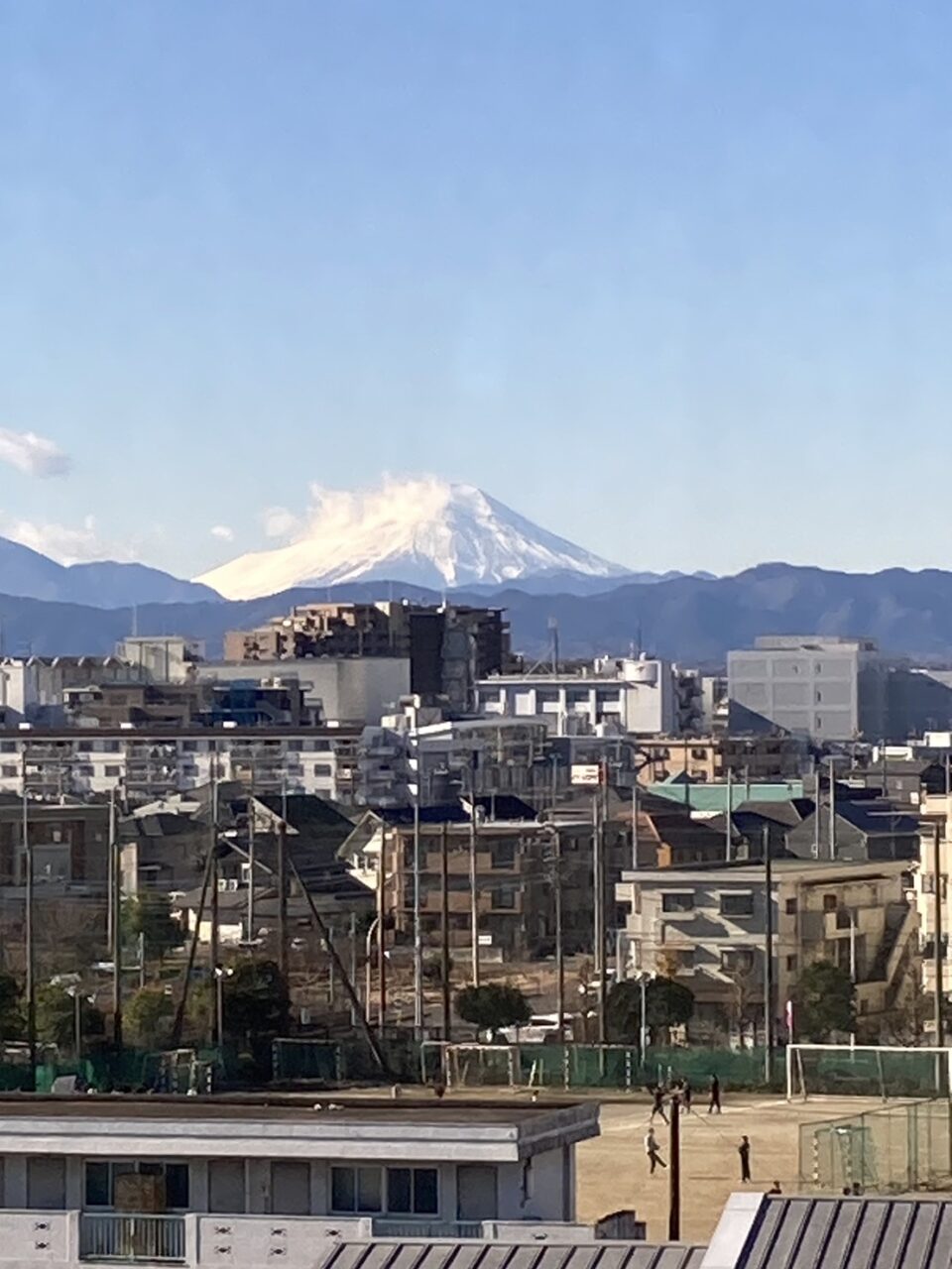 市役所から、白雪の富士山の雄姿が望めました。この季節は、晴れて空気が乾いてくると、東大和市からも富士山が見られます。富士の気高い姿を見ると、古来信仰の対象とされてきたのもわかるような気がします。