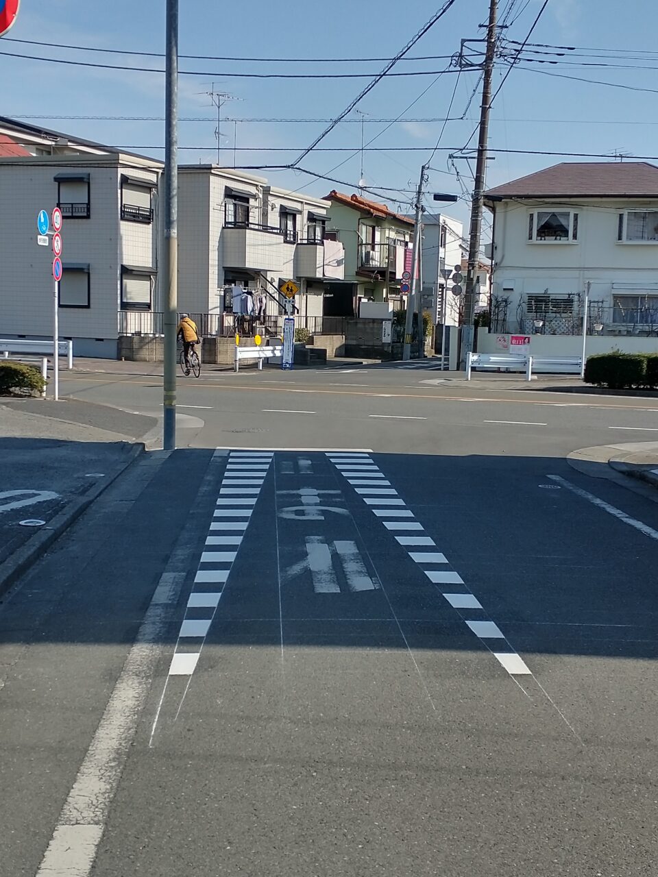 南街1丁目の市道338号線(東大和病院の南側の道路)とハミング通りの交差点が、南側からの自転車飛び出しで危険性があるとのご指摘をいただきました。