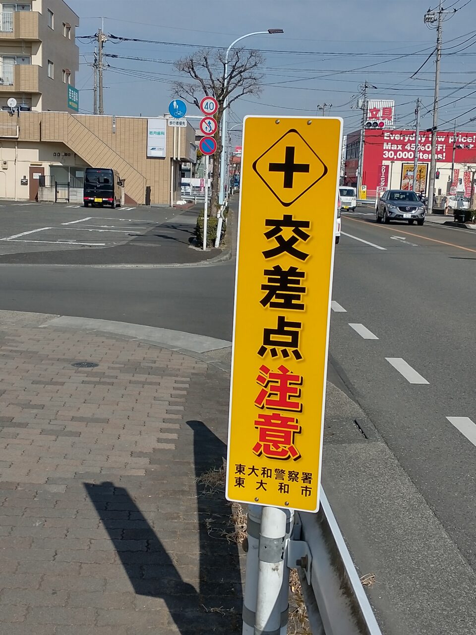 担当課に改善を相談し、道路標示の強化と注意喚起の看板設置を行っていただきました。