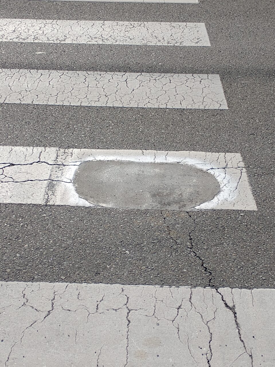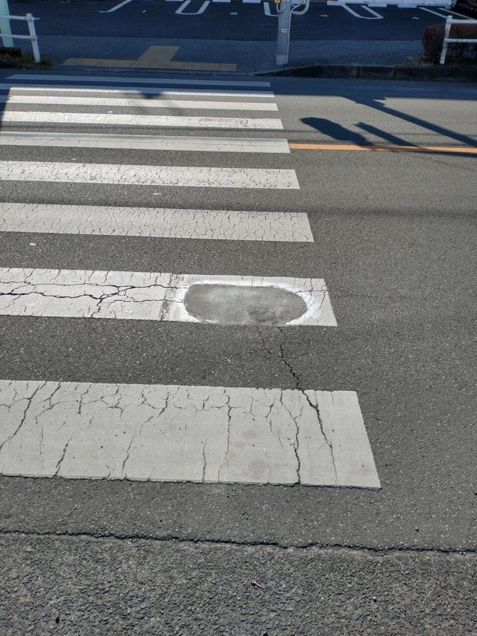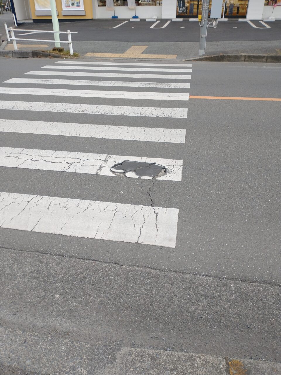 中央通りの横断歩道舗装修繕 2023年2月9日 最終更新日時 : 2023年2月9日 satake 中央通りの南街1丁目と中央1丁目に係る横断歩道(梅林堂店舗の北側)上に、舗装が劣化して穴が開いていた部分がありました。市内の別の横断歩道で、同様に穴が開いていた部分につまづき怪我をされた方がいらっしゃったようで、そうしたことが無いよう事前に修繕をお願いしました。 担当課には迅速に対応していただき感謝です。 XBluesky