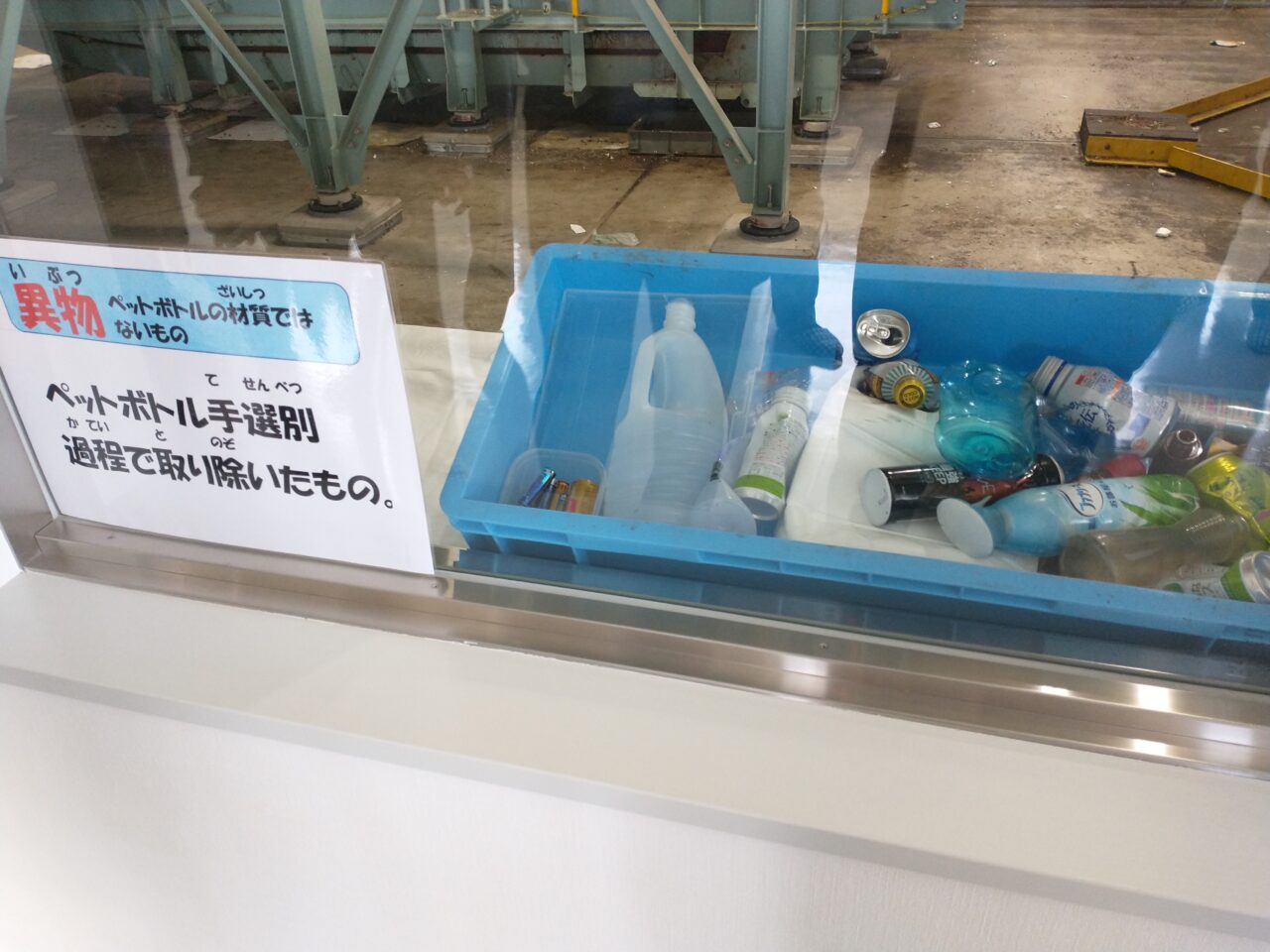 現在焼却炉は建て替え中であり、小平市中島町の施設では、粗大ごみ・不燃ごみの処理施設を視察。また、東大和市桜が丘の容器包装プラスチック・ペットボトルのリサイクル施設「スリーハーモニー」では、容プラとペットボトルの処理の実際を拝見しながら、説明を伺いました。