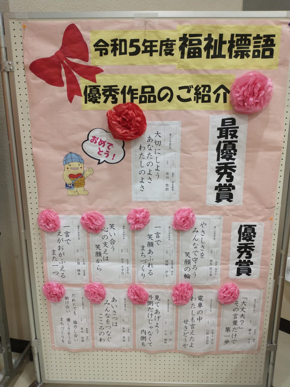 公民館ホールでの開会式に続き、福祉標語と薬物乱用防止ポスター・標語の表彰式が行われました。