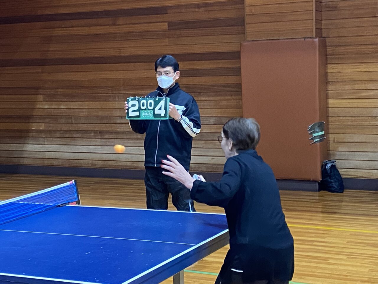 私は同僚議員と共に、スリッパ卓球に参加。グループごとに4人総当たり戦で、3試合行いました。1ゲームも取れずに完敗。経験者の皆さんはさすがに強かったです。いい汗をかきました!
