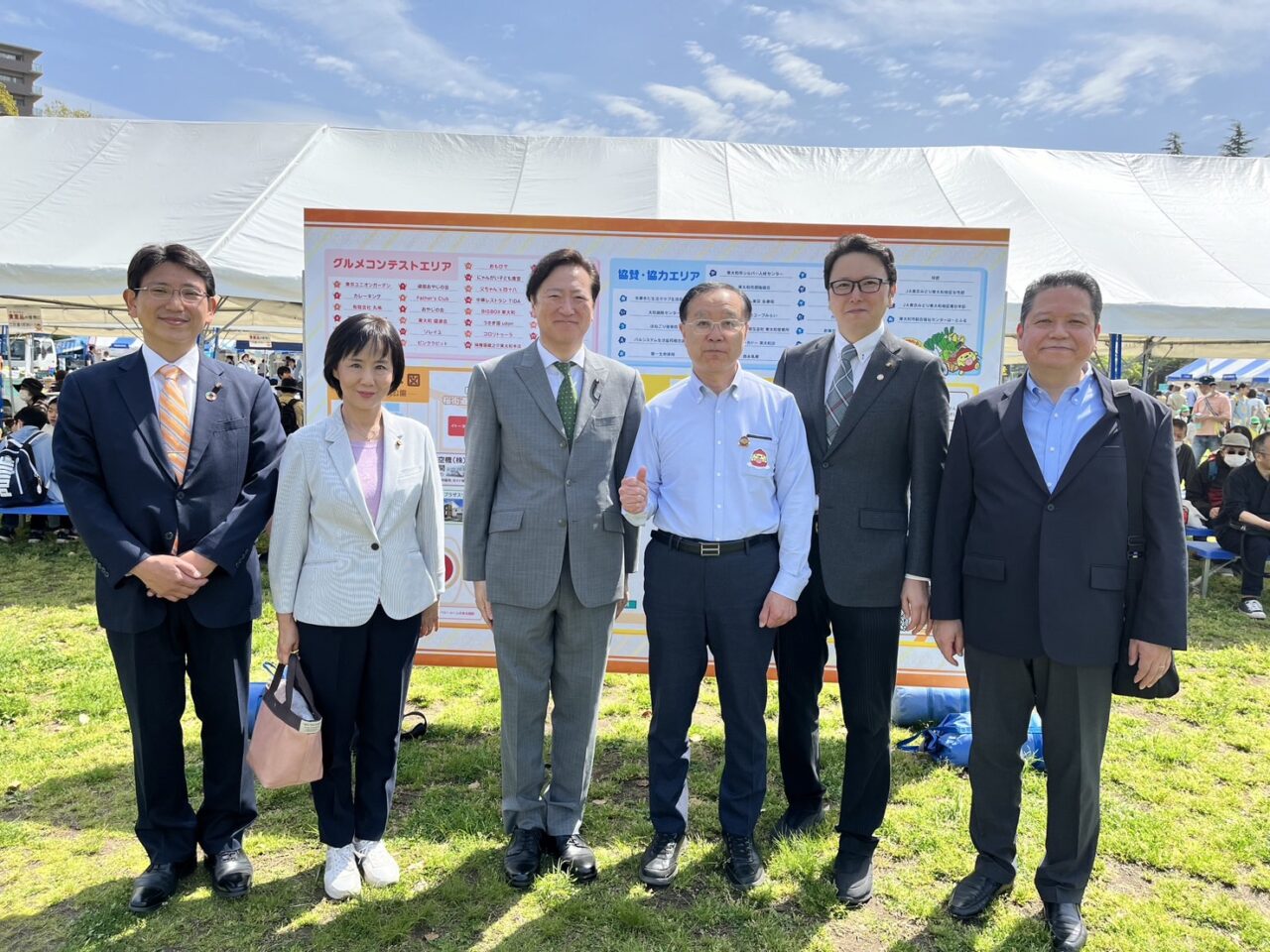 谷村都議や公明党市議団と一緒にいくつかのブースに並び、参加団体の自信作のグルメをいただきました。どれも大変おいしくいただきました。