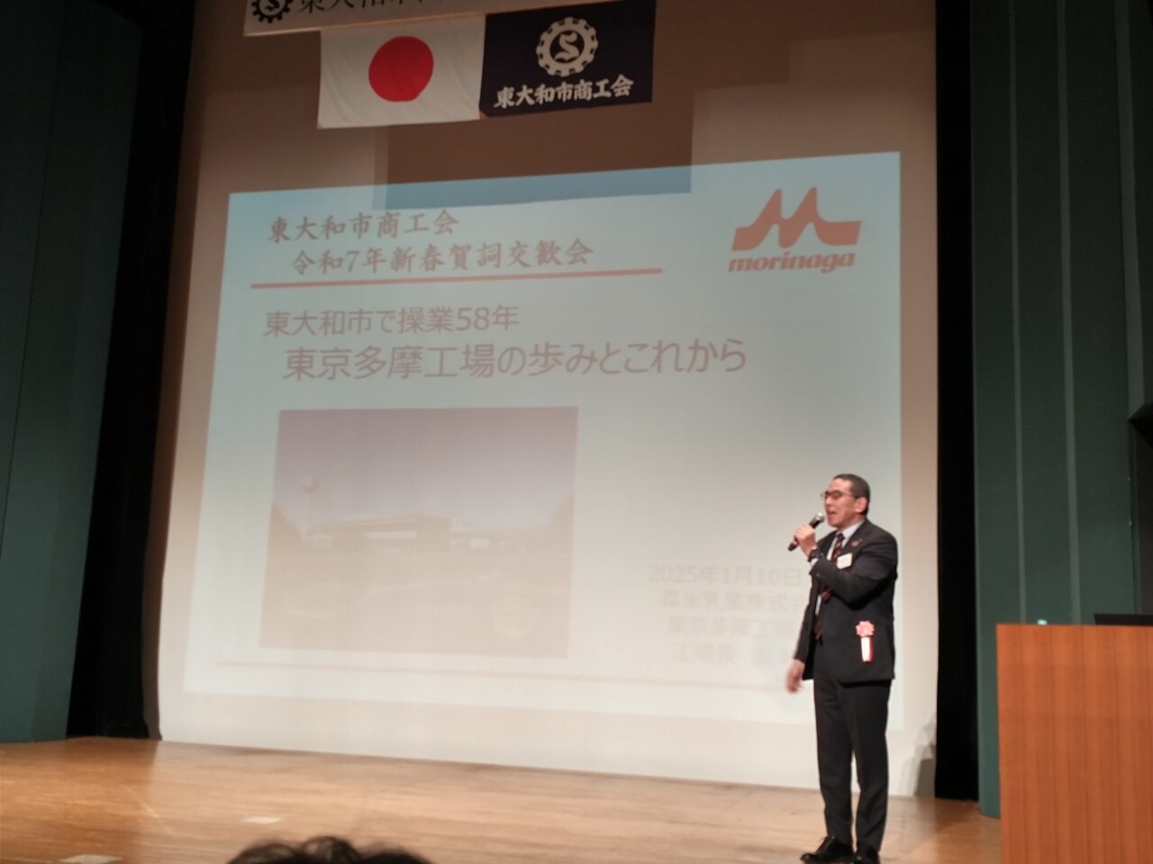 特別講演として、森永乳業多摩工場長のお話があり、東大和市の工場でどのような事業展開がされているか、昨今の酪農事情などについて貴重なお話を聴かせていただきました。