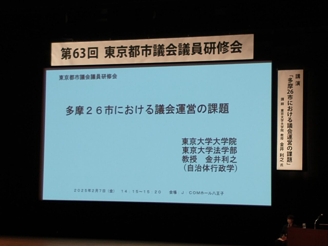 第63回となる東京都市議会議員研修会が、J:COMホール八王子で開催されました。
