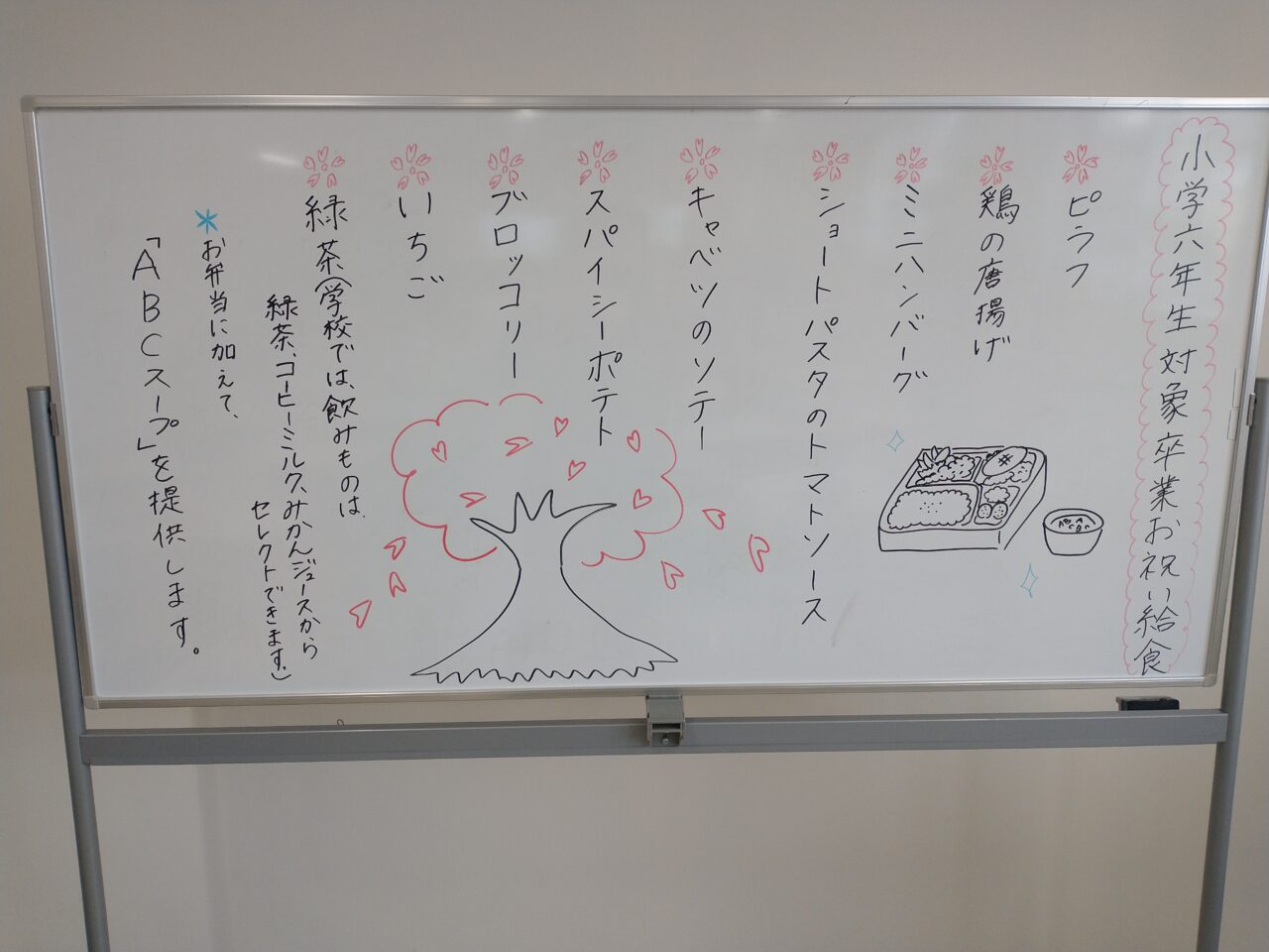 中学校の卒業式終了後、学校給食センターで市議会議員を中心とした、6年生を対象とした卒業お祝い給食(お弁当給食)の試食に参加いたしました。
