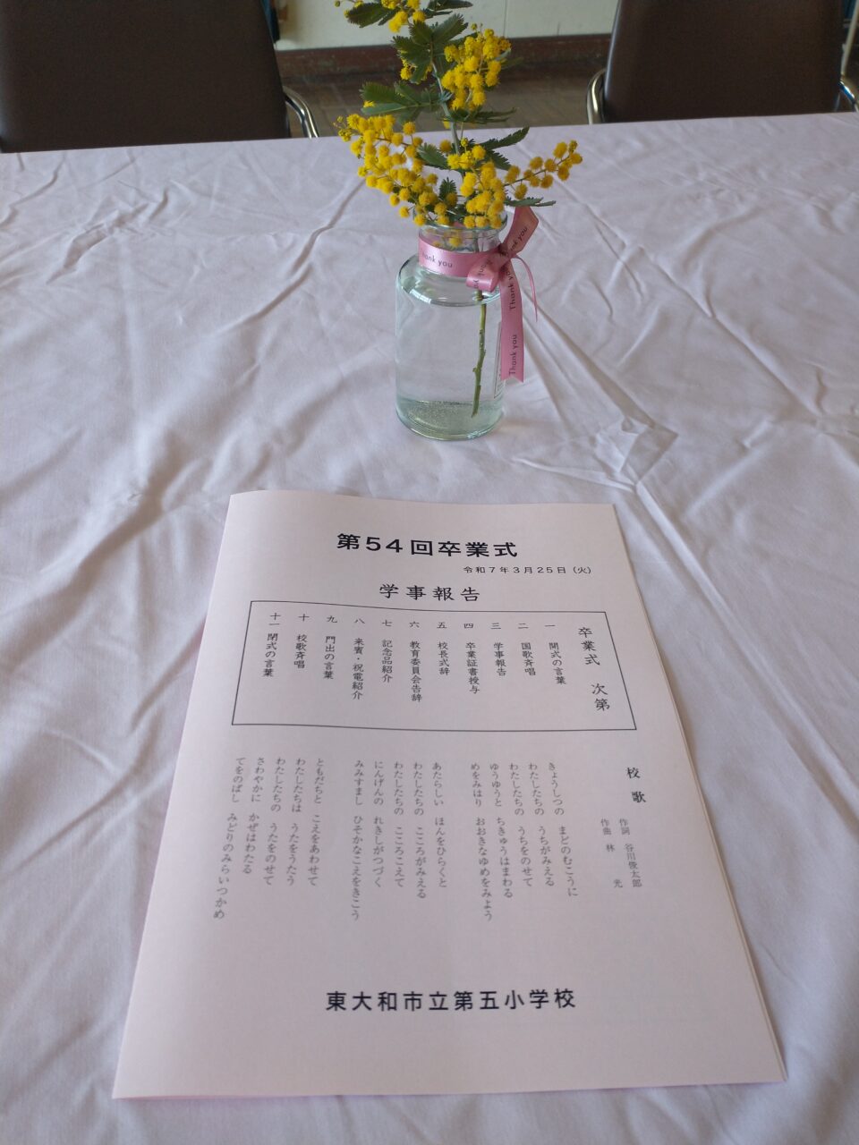 朝から穏やかに晴れた今日、市内10校の小学校で卒業式が行われました。私は、娘たちの母校である第五小学校の卒業式に参列させていただきました。