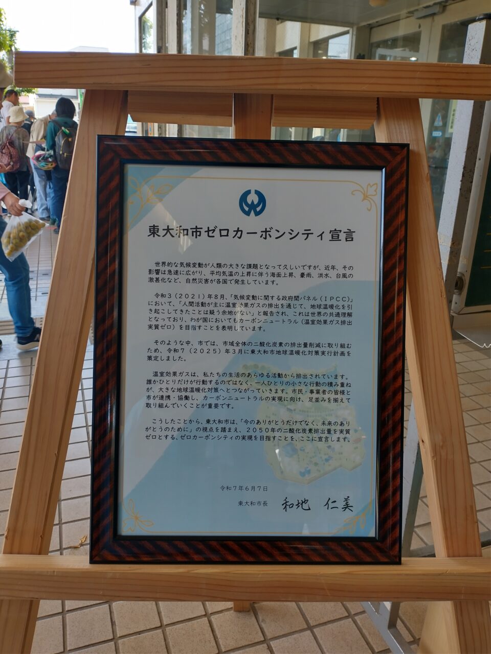 開会式では、和地市長から「東大和市ゼロカーボンシティ宣言」が発表されました。2050年の二酸化炭素排出量ゼロを目指し、その実現に向けて行動を開始します。