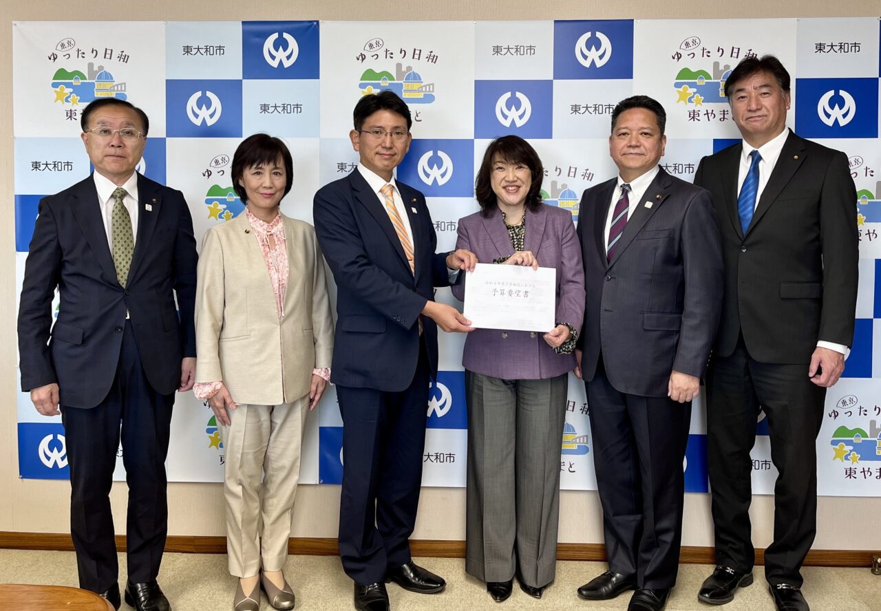 東大和市公明党は10月17日、「令和8年度予算編成における予算要望書」を和地市長へ提出しました。さらなる市政の発展と住民福祉の向上を目指した、全119項目に及ぶ内容となっています。和地市長は「有意義な提案に感謝する。できる限り反映できるよう努力したい」と話されました。