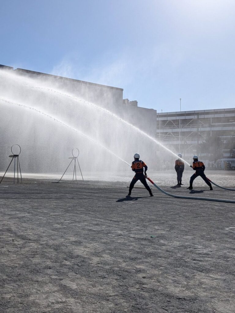 今年は、一斉放水による全消防団での演技に加え、
