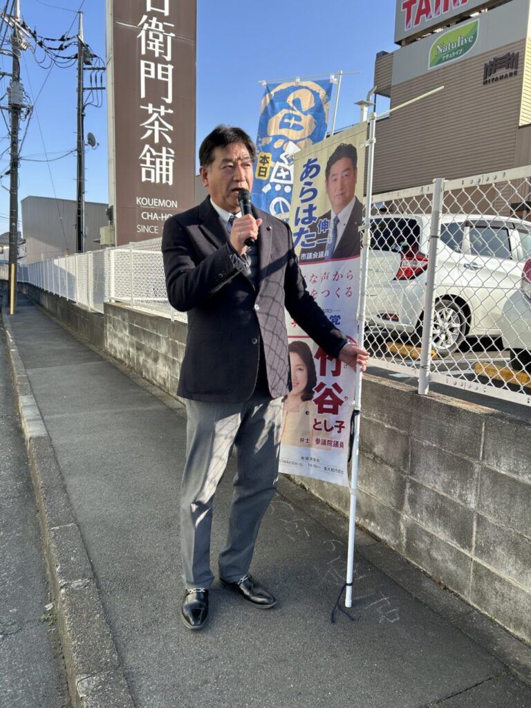 荒幡伸一議員と共に、市内数か所で街頭演説を行いました。