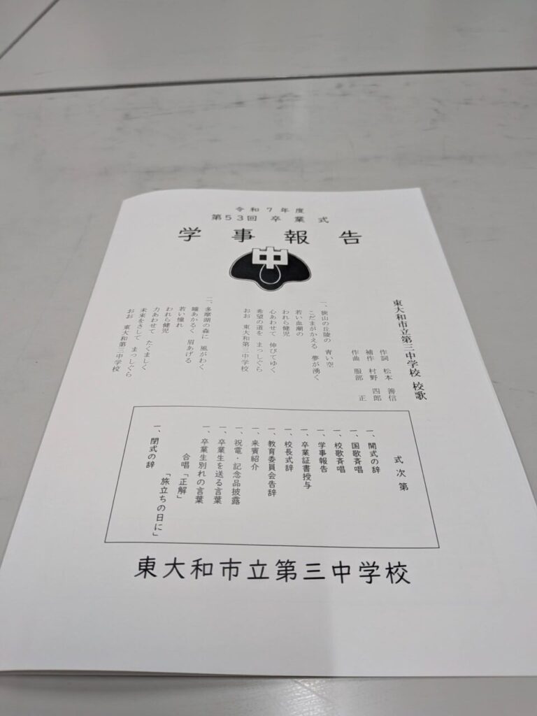 令和7年度の東大和市立中学校の卒業式の日。私は、