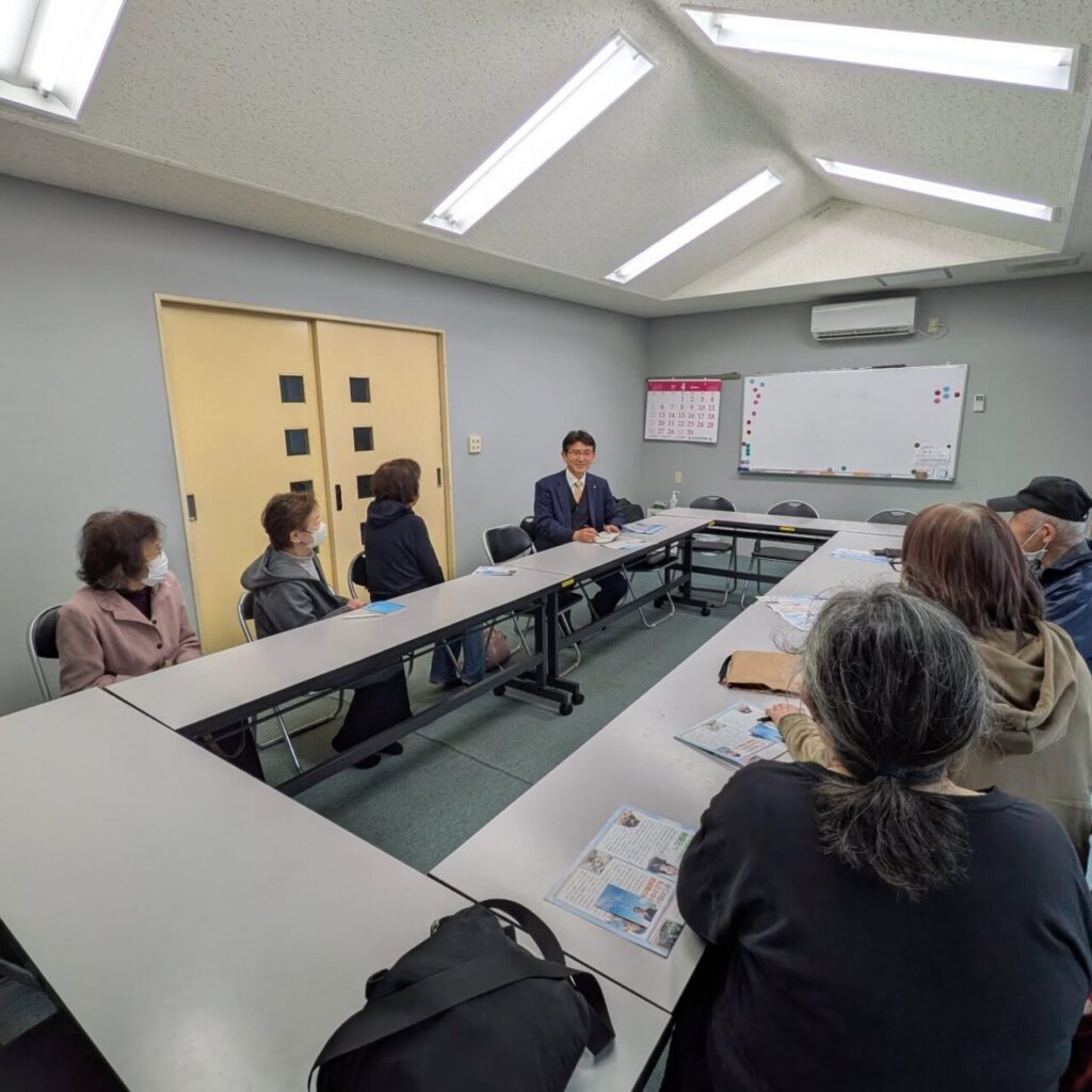 本日午前中、向原団地9号棟の集会室をお借りして、タウンミーティングを行わせていただきました。団地居住の方6名のご参加をいただきました。また、高田きよひさ都議にも同席していただくことができ、都営団地の課題、障がい者や高齢者福祉の在り方、自転車ルール改正の件など、様々なお声を頂戴することができました。
